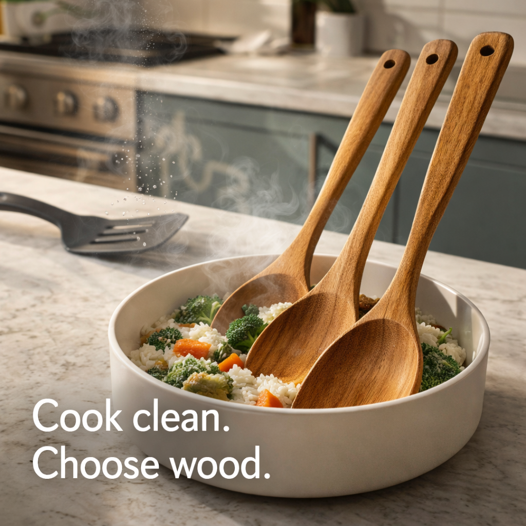 Every time you stir with plastic spoons, microscopic toxins leach into your meals. Especially when heated.